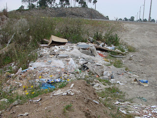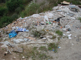 Diversas toneladas de matéria espalhado por uma nova estrada aberta à Pouco mais de 2 anos, que hoje simplesmente serve para depósito de todo o tipo de lixos e resíduos tóxicos, muitos desses prejudiciais em grande parte e libertadores de quantidades de malefícios para a saúde Publica, Ambiente e Natureza.