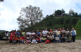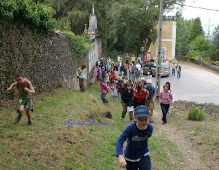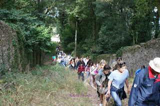 O povo saiu à rua, porque os 87 caminheiros mostraram a sua presença por aquelas terras a caminhar pelo Vale e nas margens do Rio Douro. No entanto à hora marcada estava-mos nomeio do povo no largo da Capela de Saímes N. Sr. de Lurdes, depois de se ter realizado a caminhada de cerca de 12 km, para ajudar a levantar o Arco das festas de Saímes. Este Arco mede de altura 47 metros e as fotos mostram bem como o arco é lindo e cheio de motivos, feito de dois grandes eucaliptos que pesam perto de duas toneladas. Foi obra, mas com a grande ajuda das mulheres a puxar nas cordas, os homens auxiliando com forquilhas, tudo correu às mil maravilhas e o Arco de Saímes subiu para o local destinado e vai permanecer pela semana adiante.